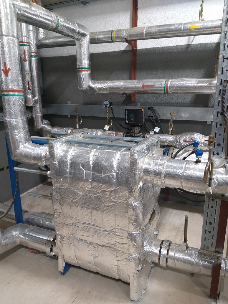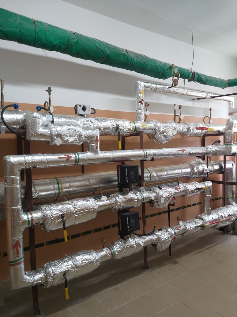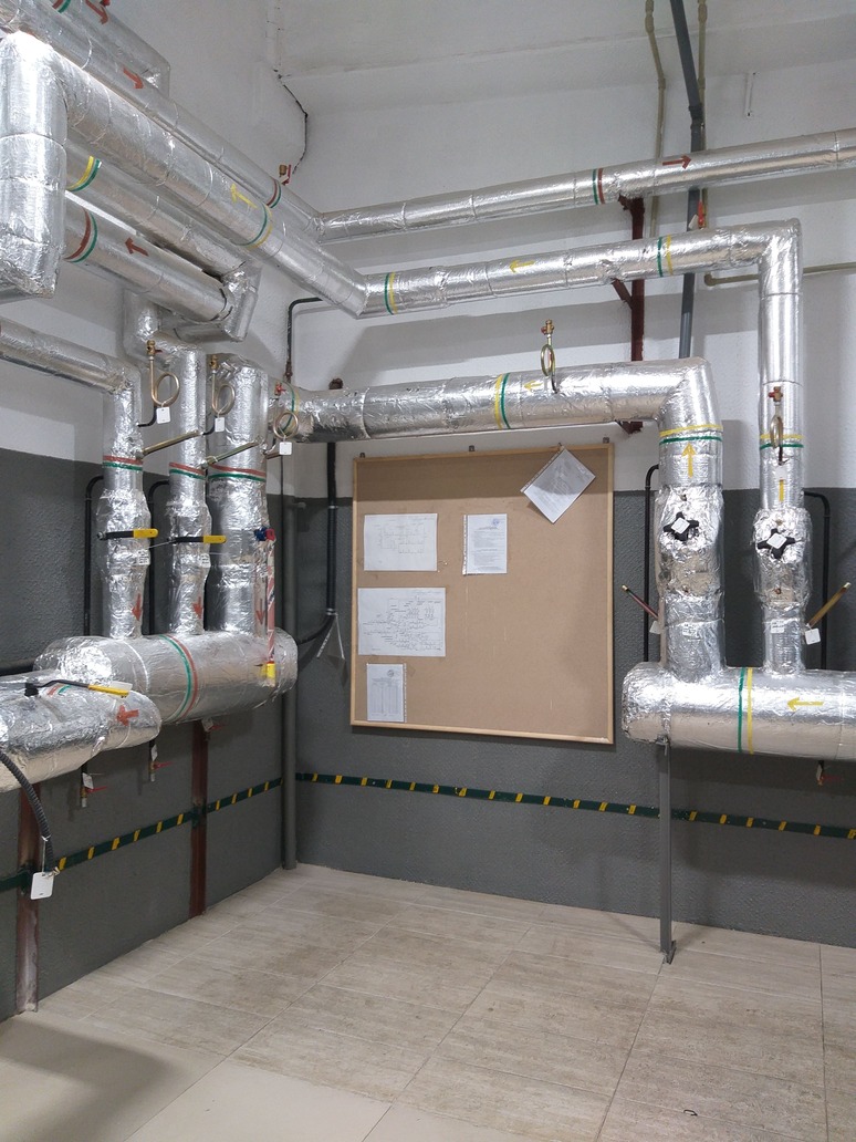 Произведена тепловая изоляция трубопроводов и арматуры современным теплоизолирующим материалом с алюминиевым слоем.