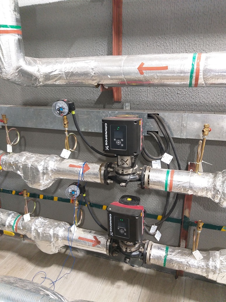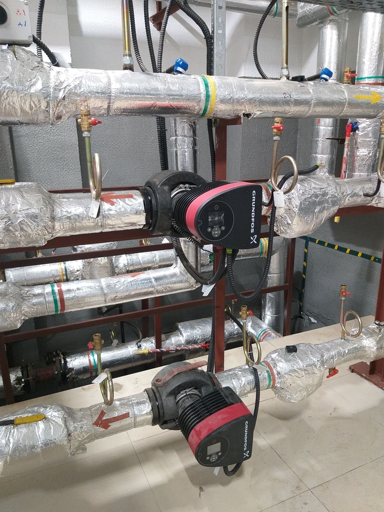 В центральном тепловом пункте выполнена замена устаревших циркуляционных насосов на современные с частотным приводом, а также установлен современный пластинчатый теплообменник для системы горячего водоснабжения.