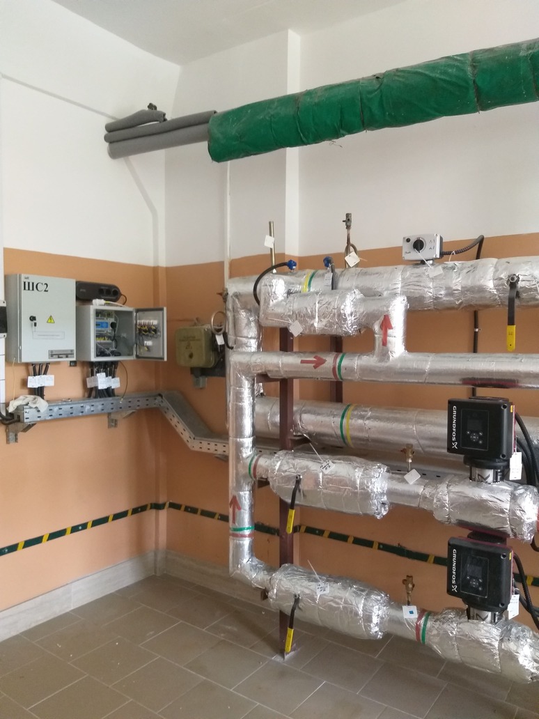 При реконструкции заменены морально и физически устаревшие трубы отопления и запорно-регулирующая арматура, что позволило устранить пропуски и утечки через старую физически изношенную арматуру и трубы. Также на циркуляционные насосы большой мощности установлены частотники для снижения потребления электрической энергии.