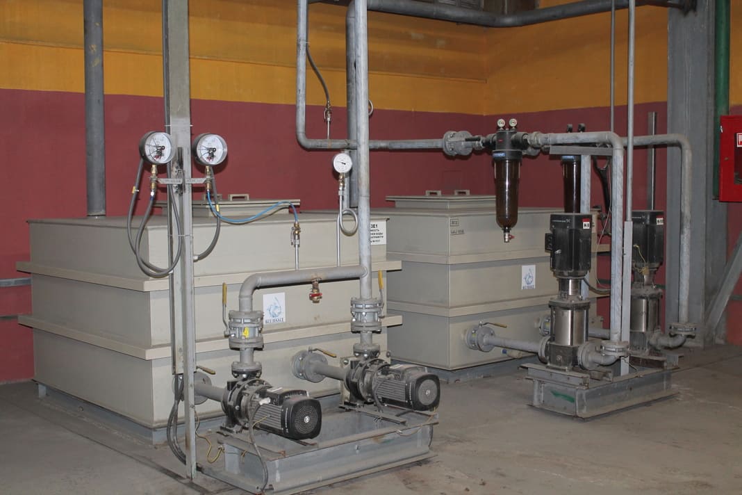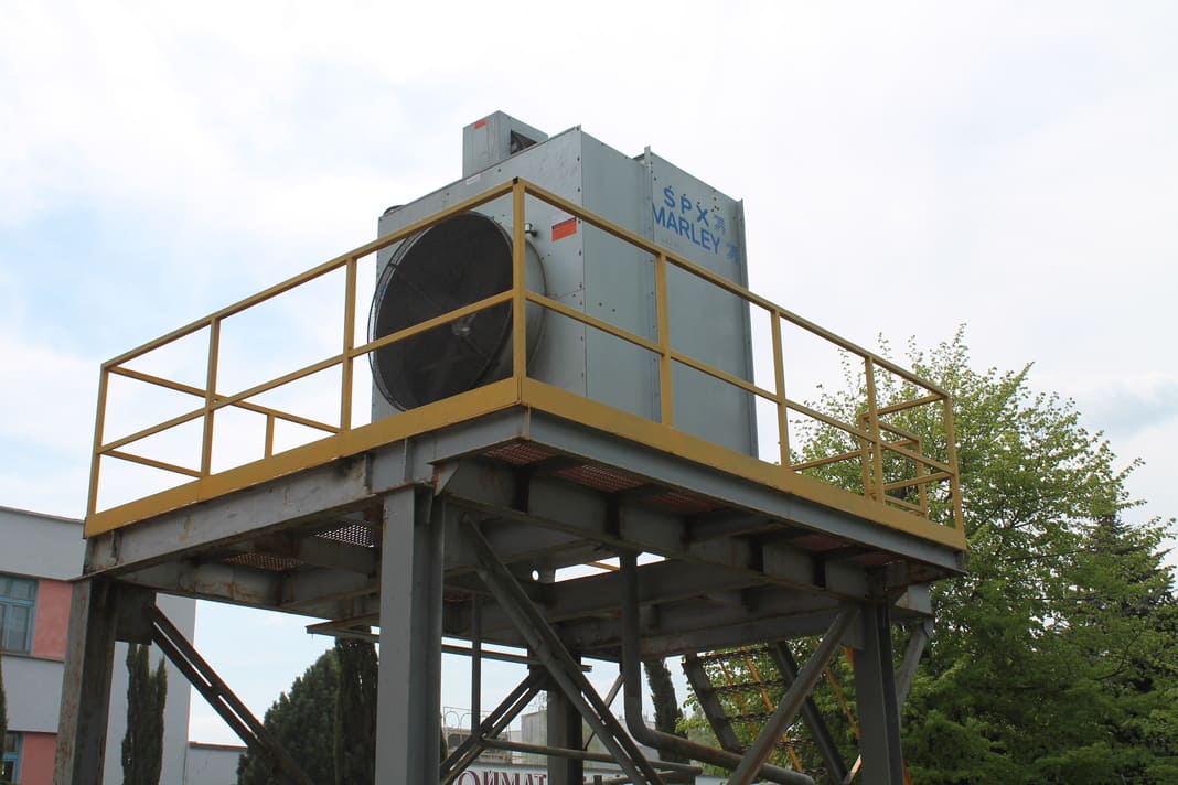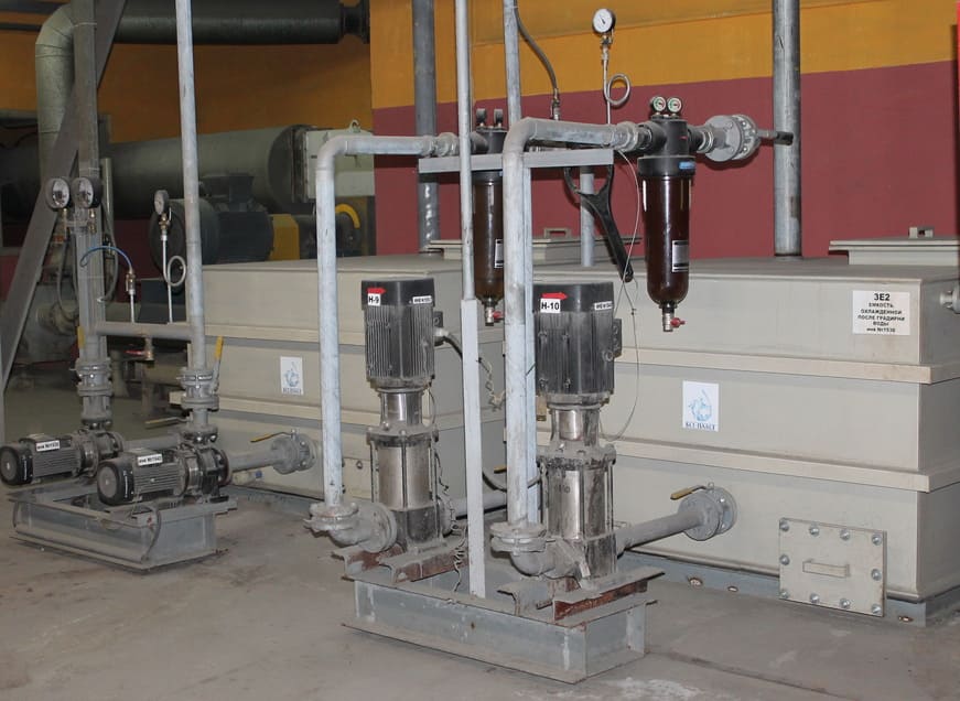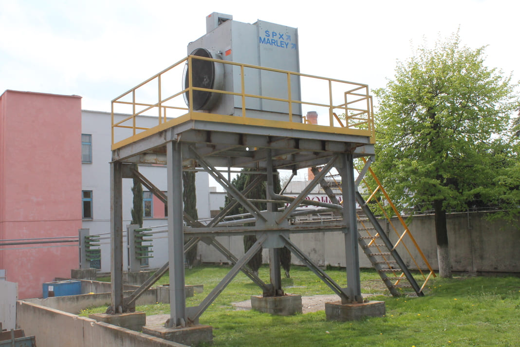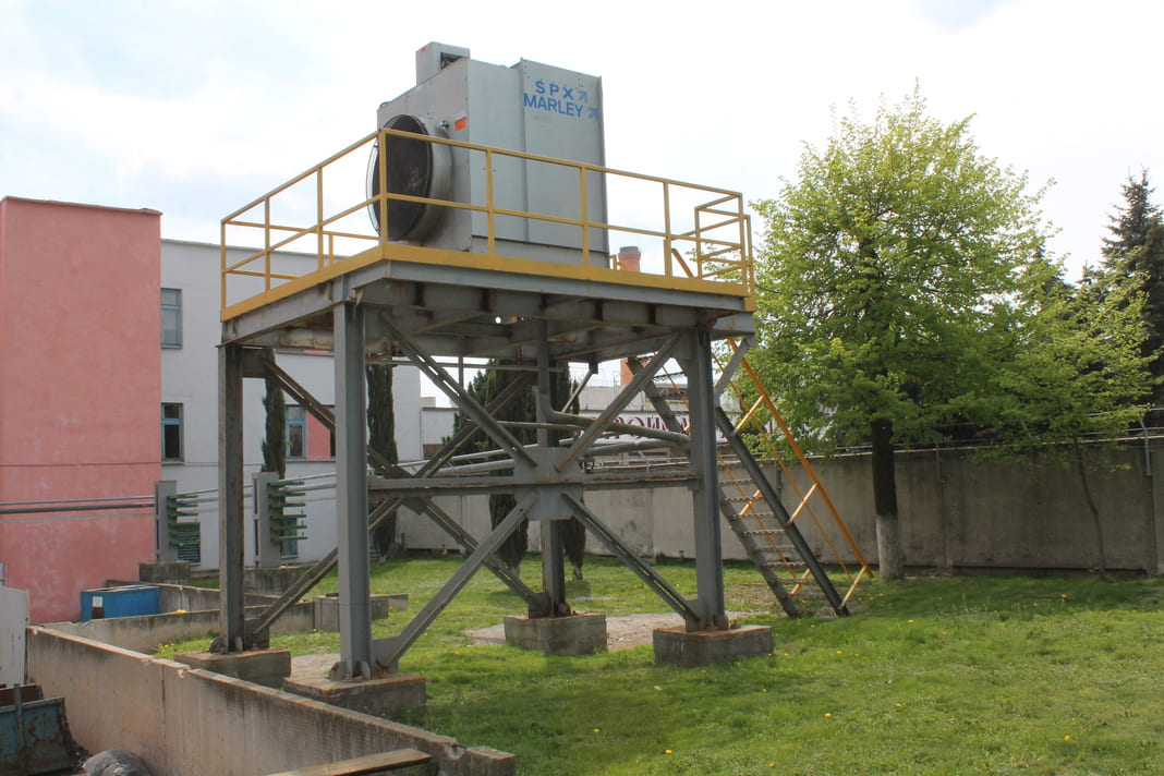 В цехе № 1 технологической лини № 2 по производству плит теплоизоляционных из минеральной ваты для охлаждение валков центрифуг взамен 3 инжекционных градирен и 4 насосных агрегатов с установленной мощностью 19 кВт установлена одна высокоэффективная градирня AQ494 с двумя насосными агрегатами с установленной мощностью 8 кВт.