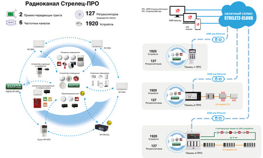 Возможность удалённой настройки, контроля и управления системами безопасности посредством сетей связи радио, GSM, Ethernet. Наличие бесплатного облачного сервиса «Streletz-cloud». Круглосуточный контроль за системами безопасности с помощью компьютера и мобильного телефона с помощью бесплатного программного обеспечения и мобильного приложения.