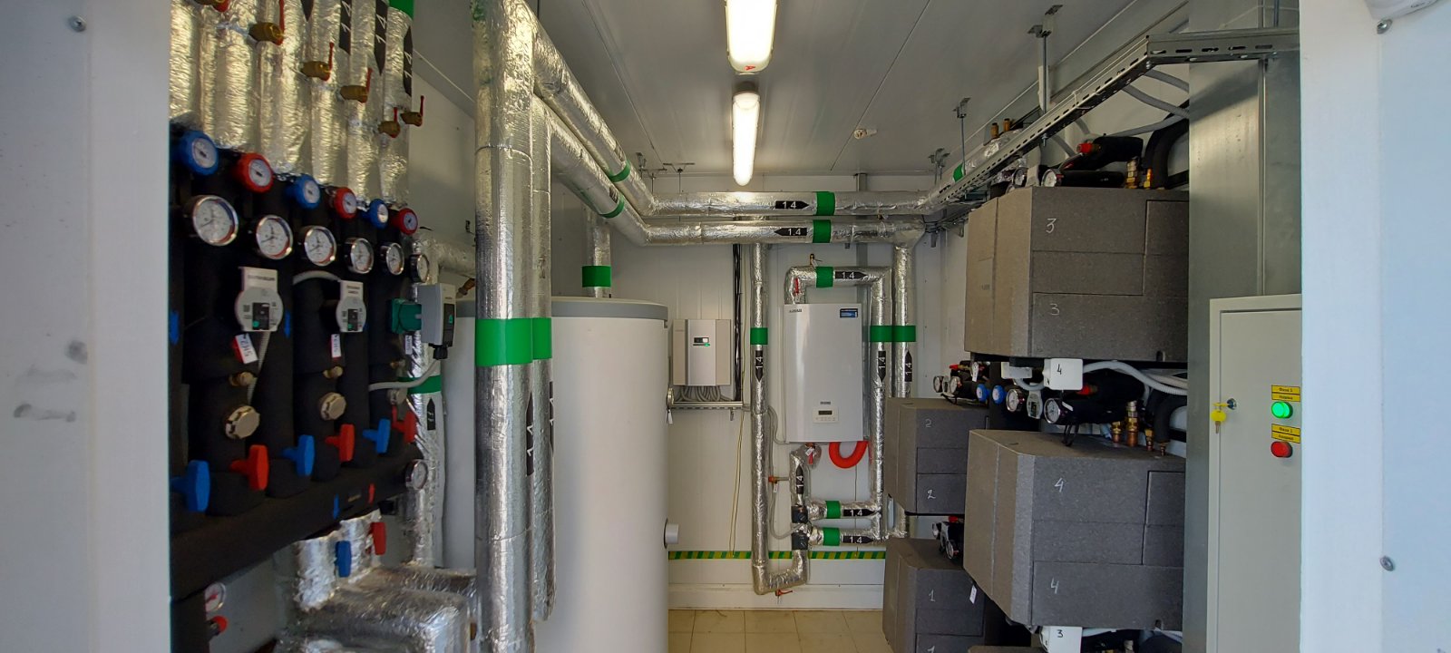 Предлагаемым решением предусматривается применение тепловых насосов «воздух-вода» в качестве основного источника тепло-, холодоснабжения для нужд кондиционирования, поддержания микроклимата. Для снижения затрат на оплату потребляемой торговым объектом электроэнергии предусмотрена крышная сетевая фотоэлектрическая станция мощностью 47 кВт.