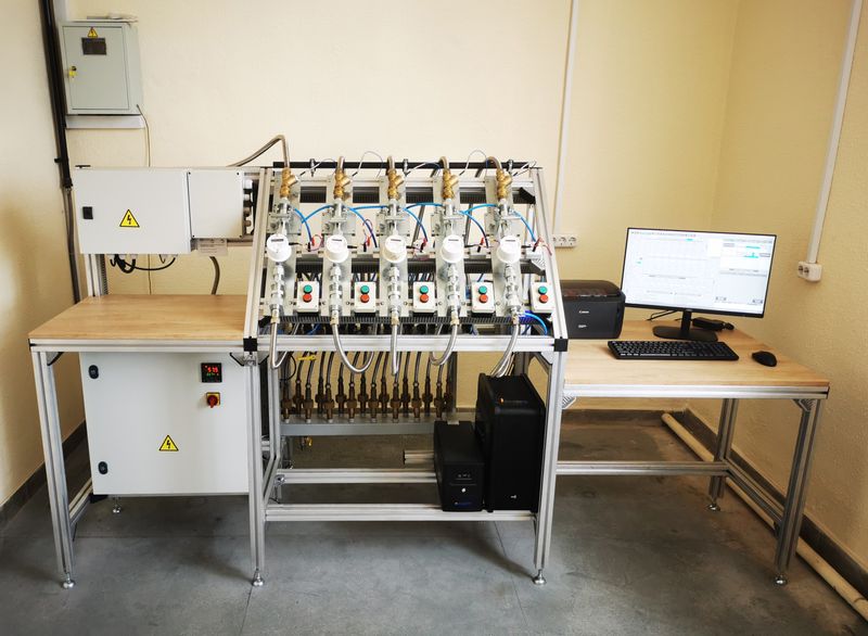 Установка позволяет поверять одновременно до 5 счетчиков одного типа.
