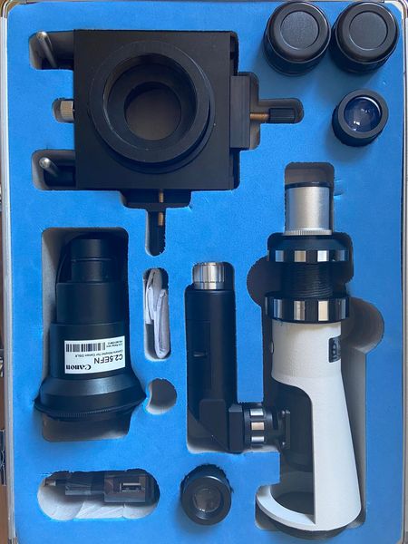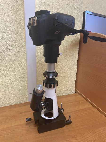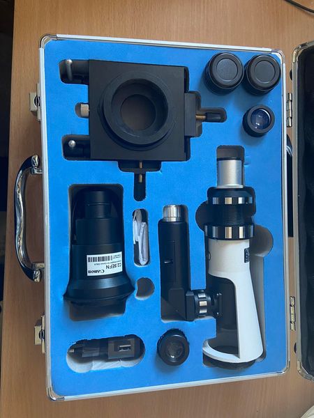 Портативный металлографический микроскоп Альтами МЕТ П оснащен цифровым зеркальным фотоаппаратом Canon EOS с оптическим адаптером, программным обеспечением для анализа изображений Altami Studio.